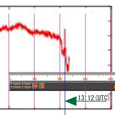 02/27 13:12頃(UTC) 上向きのピークがあります(下がり始めは、12:21頃)。