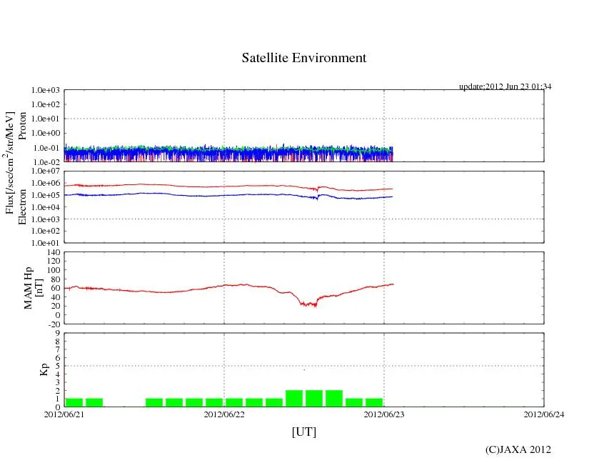 ※JAXAのETS8 MAMリアルタイム観測データのチャートは1目盛り=6時間なので、かなり見づらいです。時間の誤差に注意