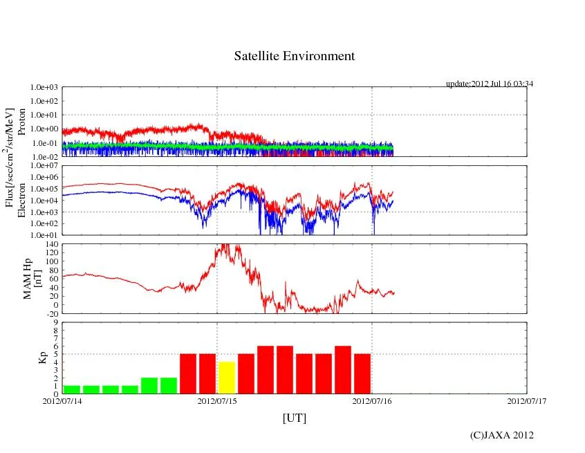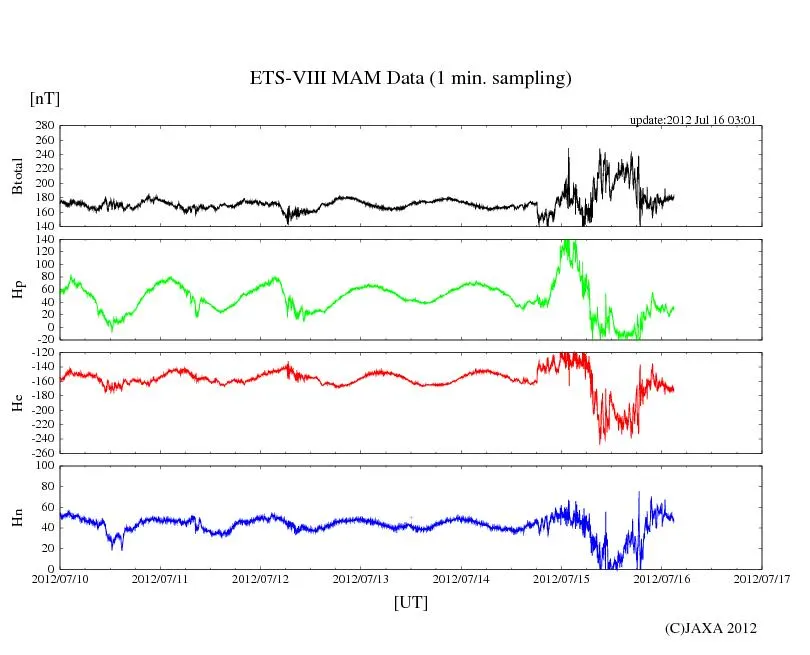 ※JAXAのETS8 MAMリアルタイム観測データのチャートは1目盛り=6時間なので、かなり見づらいです。時間の誤差に注意
