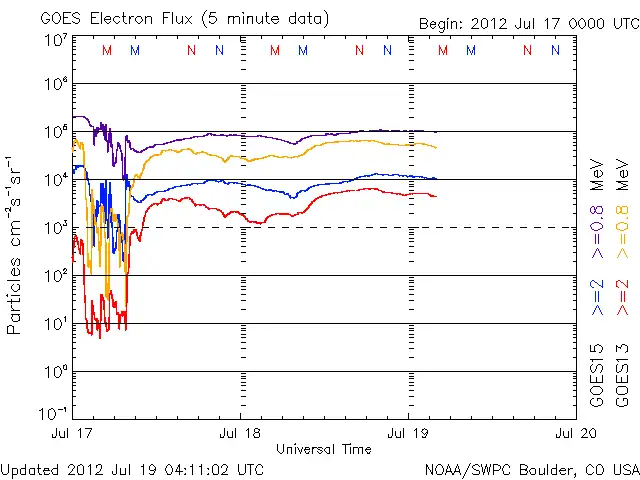 ※JAXAのETS8 MAMリアルタイム観測データのチャートは1目盛り=6時間なので、かなり見づらいです。時間の誤差に注意