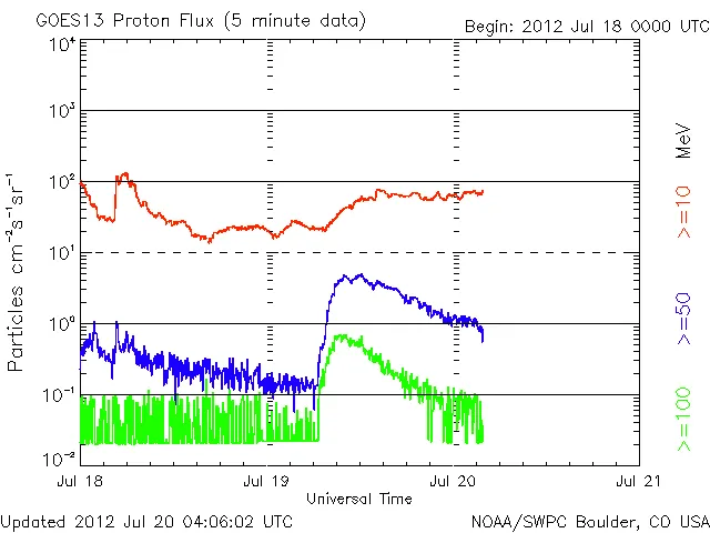 南半球の東側に東西に伸びるコロナホールがあります。こちらの影響は07/21頃、届き始めるようです。