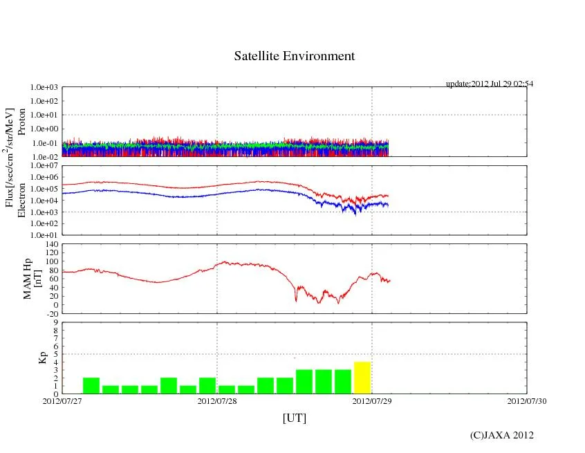 ※JAXAのETS8 MAMリアルタイム観測データのチャートは1目盛り=6時間なので、かなり見づらいです。時間の誤差に注意