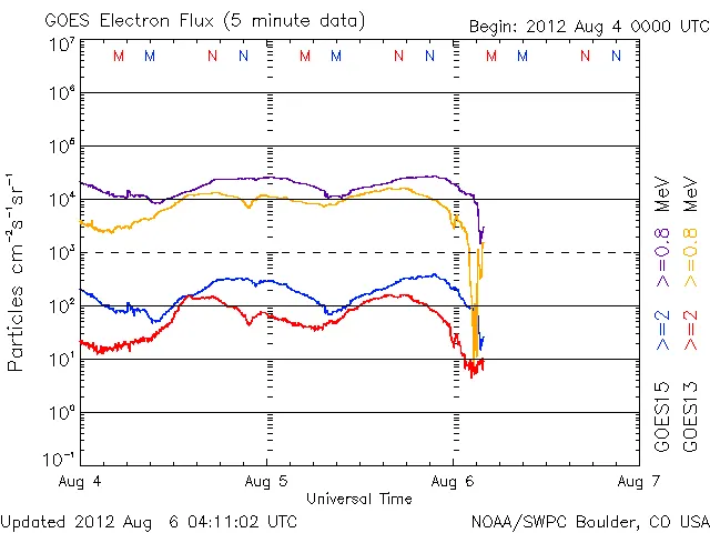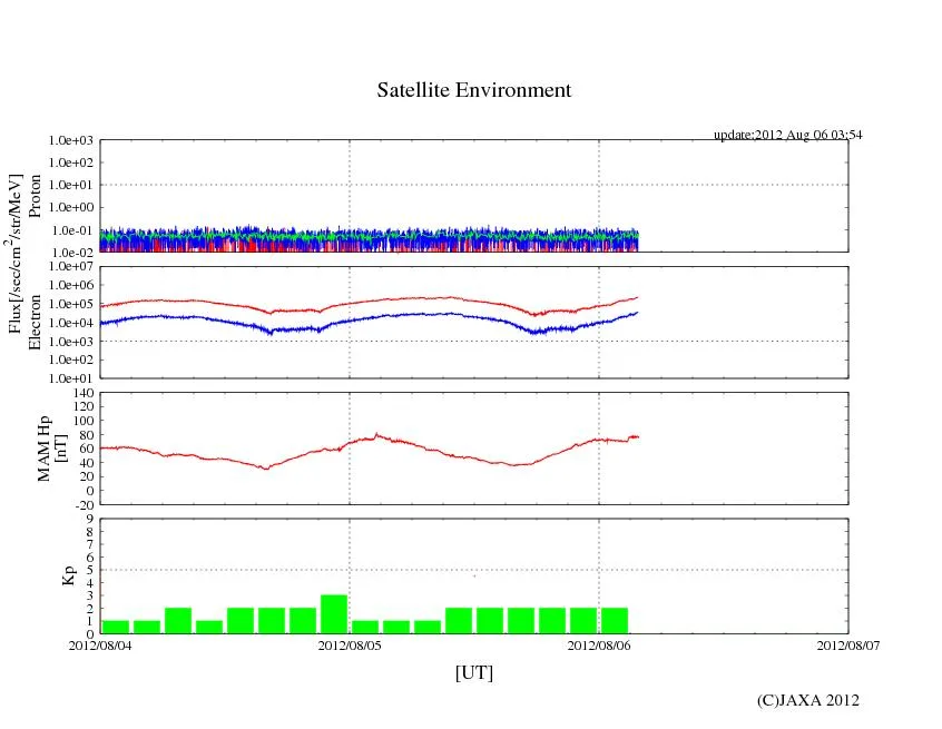 ※JAXAのETS8 MAMリアルタイム観測データのチャートは1目盛り=6時間なので、かなり見づらいです。時間の誤差に注意