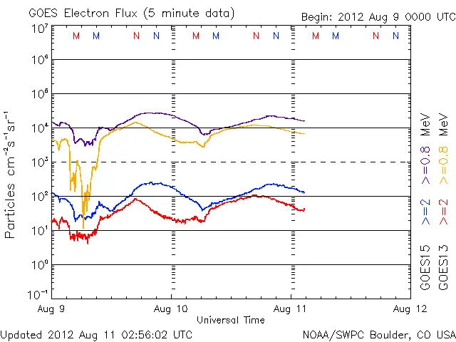●8月18日(特異日)太陽フレアの発生と地球上空の静止軌道電子の動きを月末まで監視しましょう。