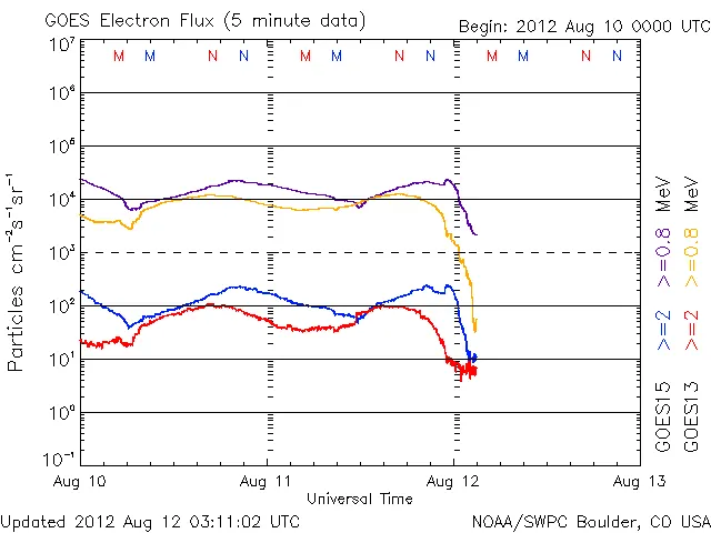 ●8月18日(特異日)太陽フレアの発生と地球上空の静止軌道電子の動きを月末まで監視しましょう。