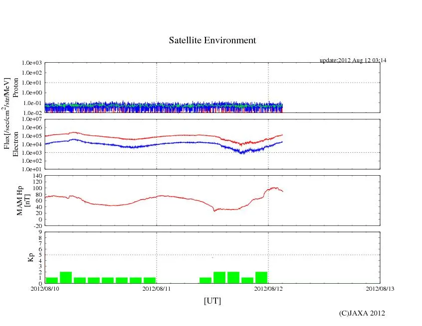 ※JAXAのETS8 MAMリアルタイム観測データのチャートは1目盛り=6時間なので、かなり見づらいです。時間の誤差に注意
