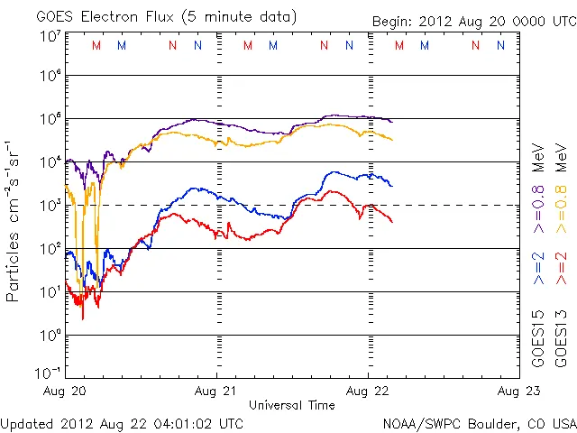●太陽フレアの発生と地球上空の静止軌道電子の動きを月末まで監視しましょう。