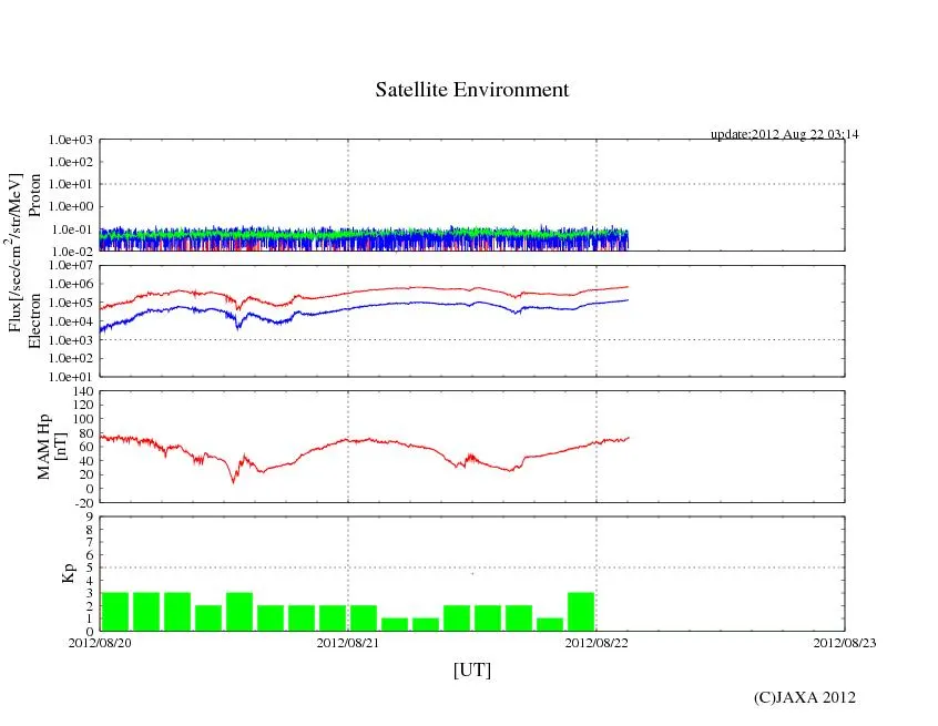※JAXAのETS8 MAMリアルタイム観測データのチャートは1目盛り=6時間なので、かなり見づらいです。時間の誤差に注意