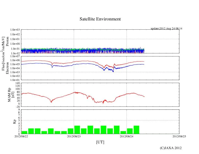 ※JAXAのETS8 MAMリアルタイム観測データのチャートは1目盛り=6時間なので、かなり見づらいです。時間の誤差に注意