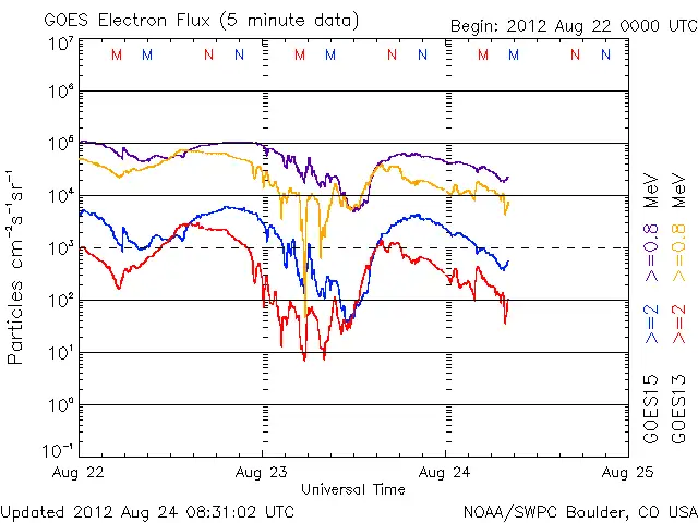 ●太陽フレアの発生と地球上空の静止軌道電子の動きを月末まで監視しましょう。