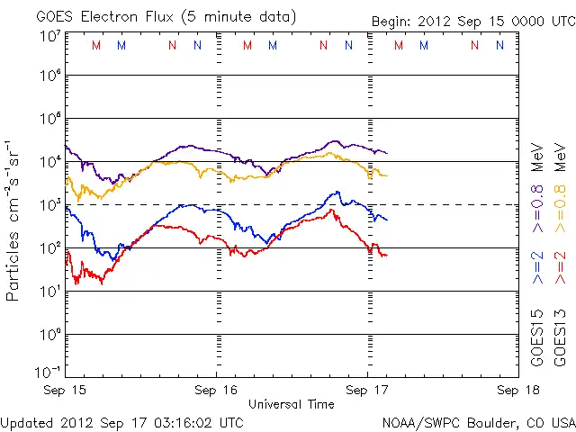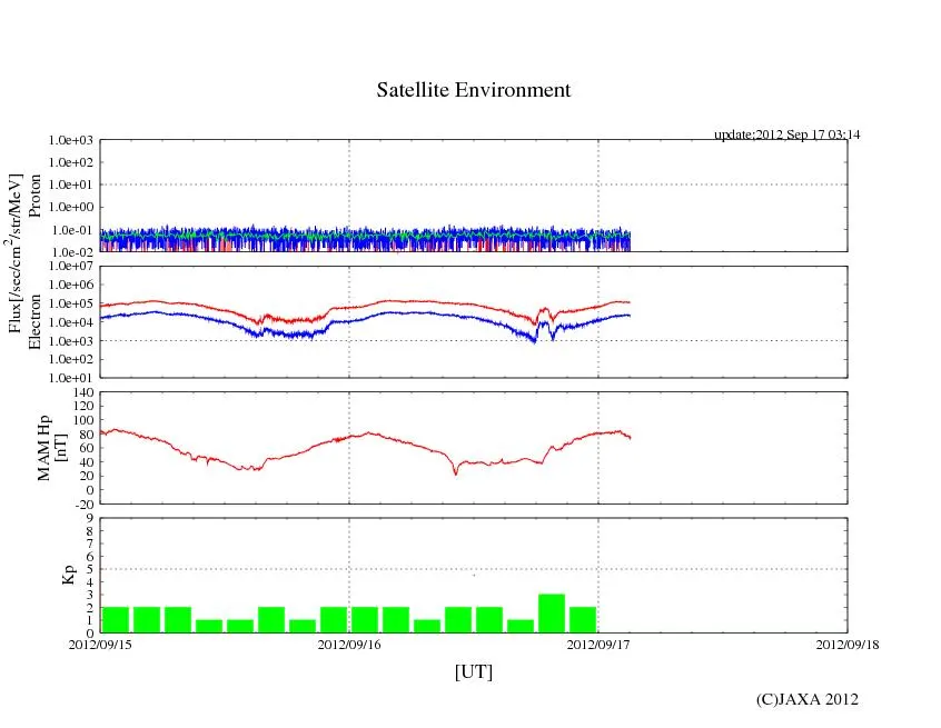 ※JAXAのETS8 MAMリアルタイム観測データのチャートは1目盛り=6時間なので、かなり見づらいです。時間の誤差に注意
