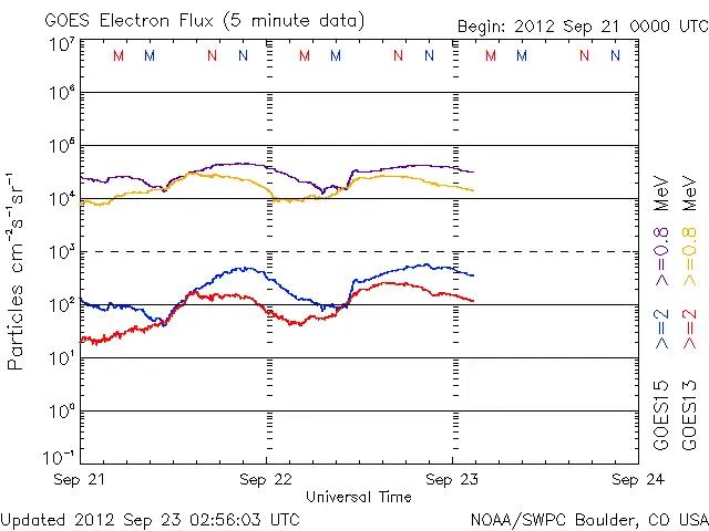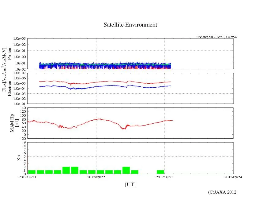 ※JAXAのETS8 MAMリアルタイム観測データのチャートは1目盛り=6時間なので、かなり見づらいです。時間の誤差に注意