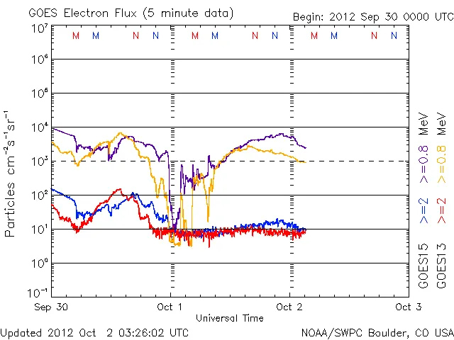 激しい乱れは収まったようですが、>=2MeVのラインが底を這うような動きをしています。この後、急激に変化するようなら要注意です。