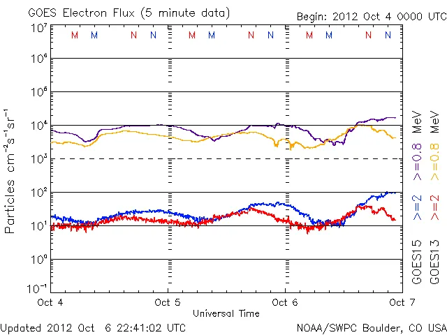 ※JAXAのETS8 MAMリアルタイム観測データのチャートは1目盛り=6時間なので、かなり見づらいです。時間の誤差に注意