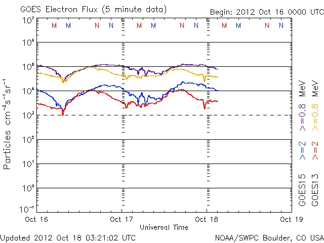 ※JAXAのETS8 MAMリアルタイム観測データのチャートは1目盛り=6時間なので、かなり見づらいです。時間の誤差に注意