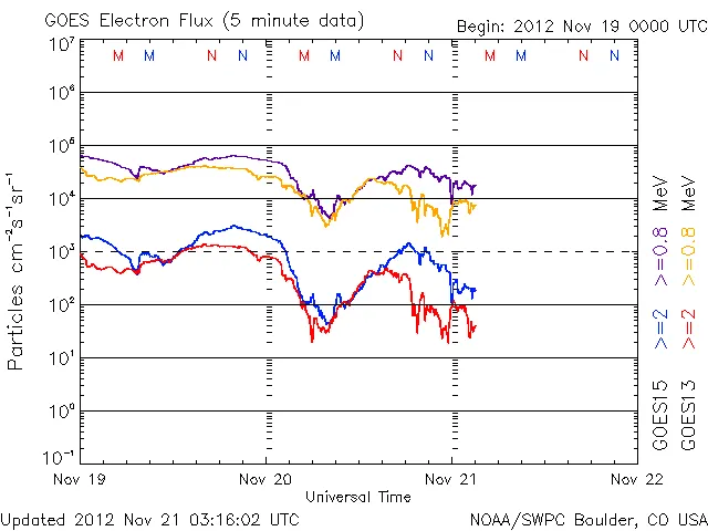 ※JAXAのETS8 MAMリアルタイム観測データのチャートは1目盛り=6時間なので、かなり見づらいです。時間の誤差に注意
