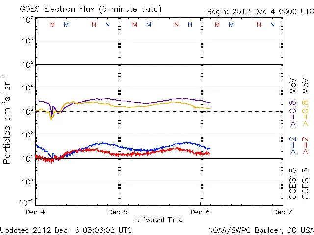 ※JAXAのETS8 MAMリアルタイム観測データのチャートは1目盛り=6時間なので、かなり見づらいです。時間の誤差に注意