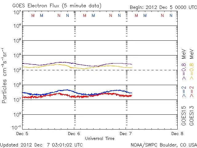 ※JAXAのETS8 MAMリアルタイム観測データのチャートは1目盛り=6時間なので、かなり見づらいです。時間の誤差に注意