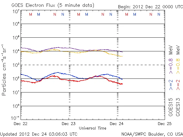 12/23 14時(UT)くらいに極小さな反応がありましたが、その後は概ね穏やかです。