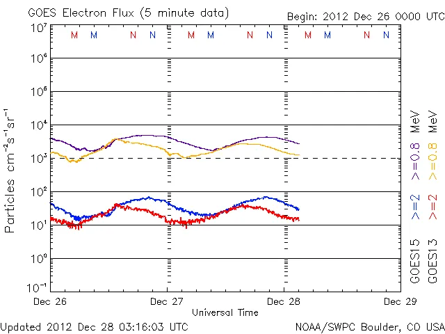 ※JAXAのETS8 MAMリアルタイム観測データのチャートは1目盛り=6時間なので、かなり見づらいです。時間の誤差に注意