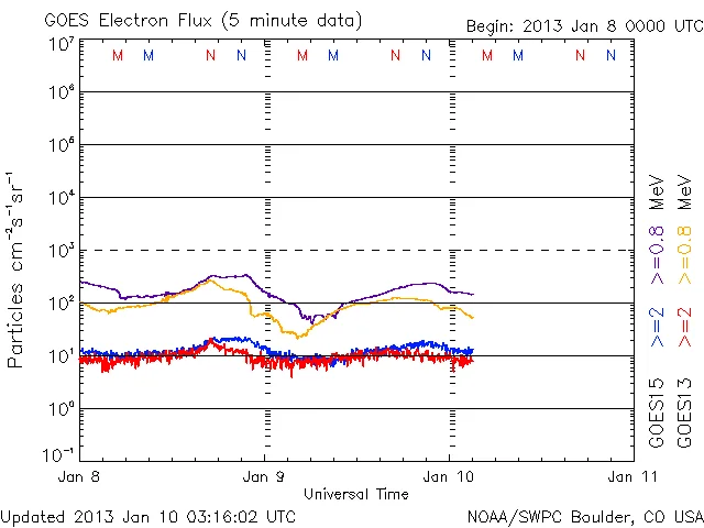 ※JAXAのETS8 MAMリアルタイム観測データのチャートは1目盛り=6時間なので、かなり見づらいです。時間の誤差に注意