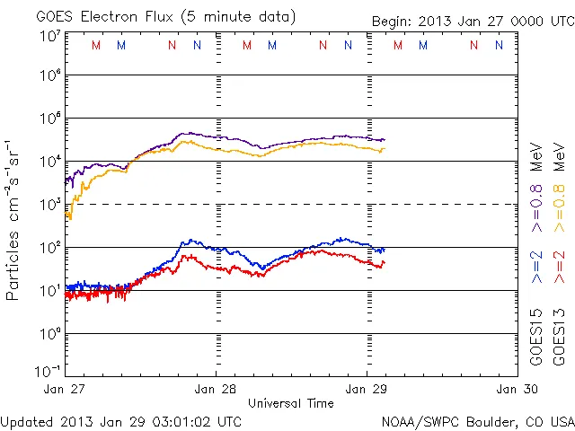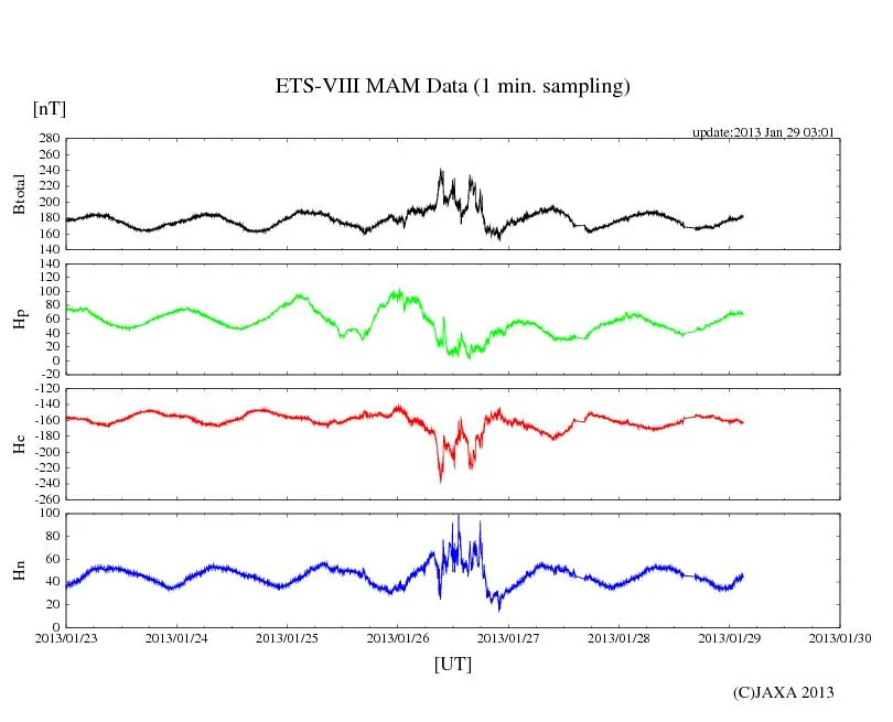 ※JAXAのETS8 MAMリアルタイム観測データのチャートは1目盛り=6時間なので、かなり見づらいです。時間の誤差に注意