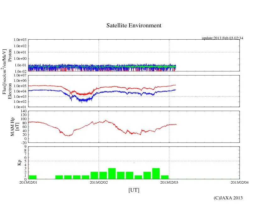 ※JAXAのETS8 MAMリアルタイム観測データのチャートは1目盛り=6時間なので、かなり見づらいです。時間の誤差に注意