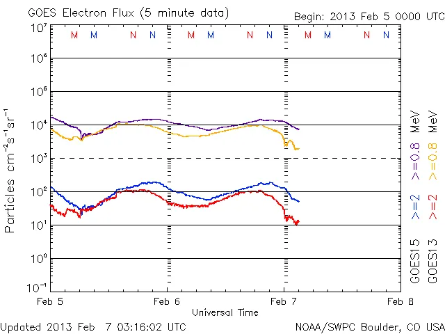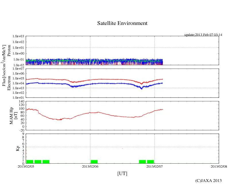 ※JAXAのETS8 MAMリアルタイム観測データのチャートは1目盛り=6時間なので、かなり見づらいです。時間の誤差に注意