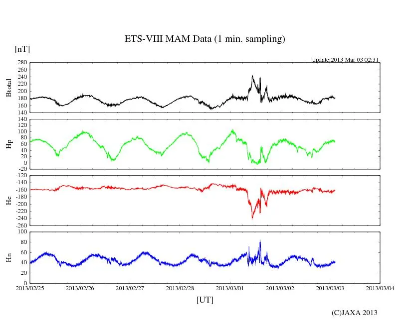 ●JAXAのETS8 MAMリアルタイム観測データの地球方向