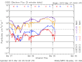 携帯の方で本BLOGからのリンクではチャートが見づらい場合はリーマンさんの記事内にある「注意報まとめ」のリンクをたどるとポリポリさんが作成されたページに飛べます。このページ内に【ETS8静止軌道磁場】がありますので、こちらをクリックするとポリポリさんが作成された「携帯でも見られるグラフ」をご覧いただけると思います。(ポリポリさん、いつもお疲れ様でございます。ぺこり)