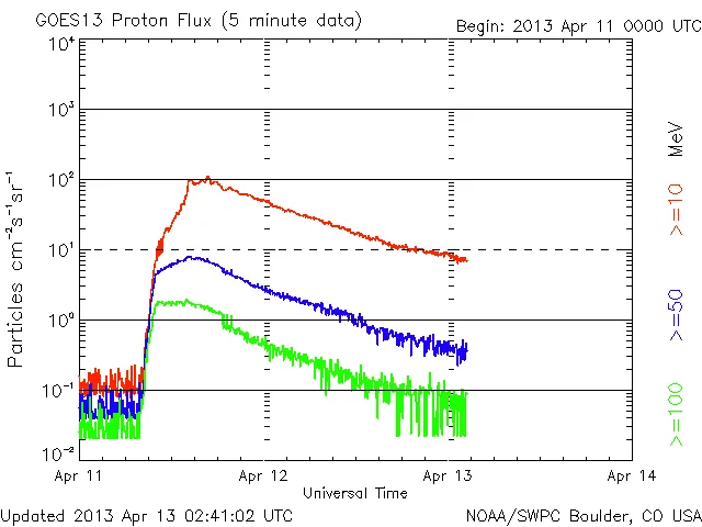 04/11 08時(UT)以降上昇し、下がり続けていますが、まだ高い状態です。
