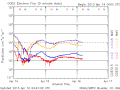 携帯の方で本BLOGからのリンクではチャートが見づらい場合はリーマンさんの記事内にある「注意報まとめ」のリンクをたどるとポリポリさんが作成されたページに飛べます。このページ内に【ETS8静止軌道磁場】がありますので、こちらをクリックするとポリポリさんが作成された「携帯でも見られるグラフ」をご覧いただけると思います。(ポリポリさん、いつもお疲れ様でございます。ぺこり)