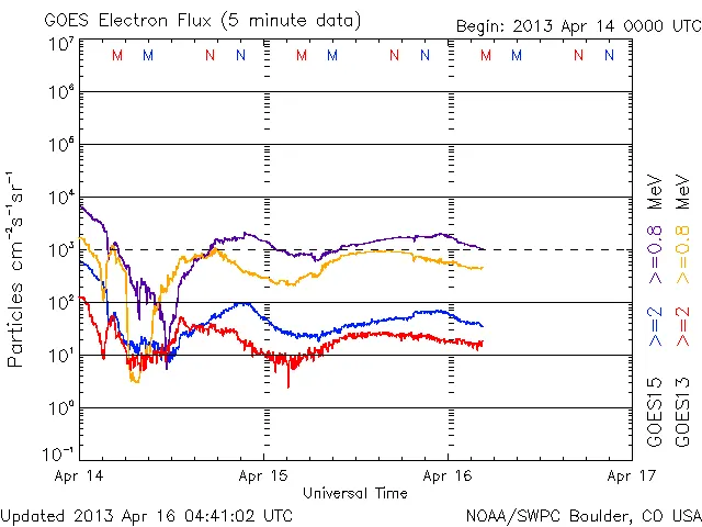 04/11 08時(UT)以降上昇し、下がり続けていますが、通常のレベルに戻るにはもう少し時間がかかりそうです。