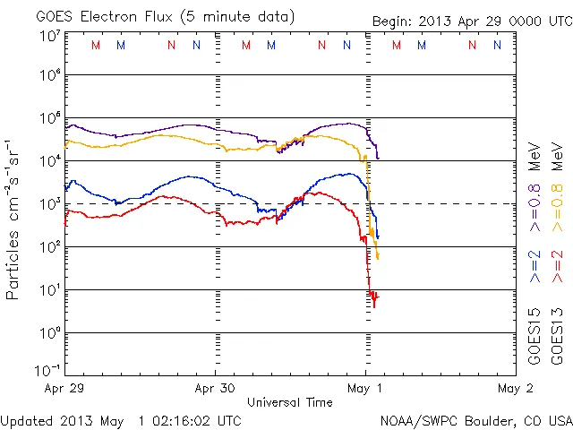 概ね穏やかな推移でしたが04/30 23時~05/01 01時(UT)頃にかけて急激な落ち込みがありました。