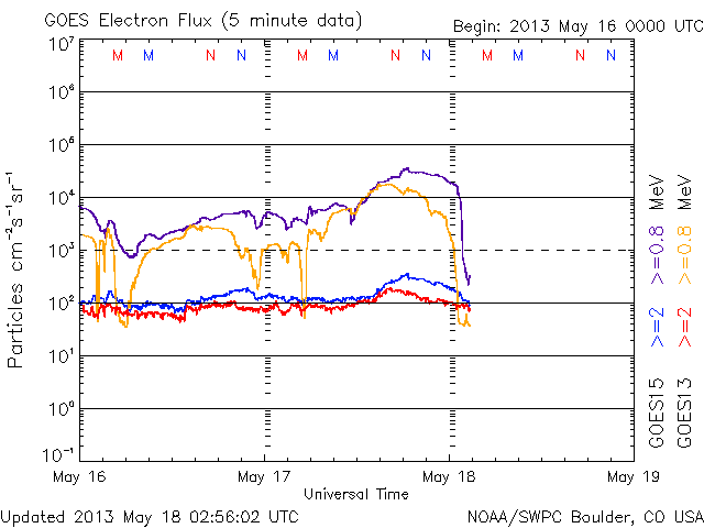 >=0.8MeVのラインの乱れが目立ちます。05/17 05時(UT)くらいに少し強めな反応がありました。また、UTで日付が変わった18日以降、激しい落ち込みがあります。