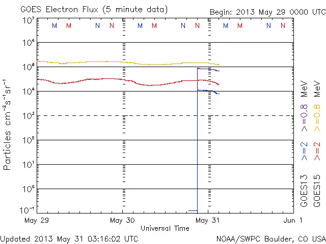 携帯の方で本BLOGからのリンクではチャートが見づらい場合はリーマンさんの記事内にある「注意報まとめ」のリンクをたどるとポリポリさんが作成されたページに飛べます。このページ内に【ETS8静止軌道磁場】がありますので、こちらをクリックするとポリポリさんが作成された「携帯でも見られるグラフ」をご覧いただけると思います。(ポリポリさん、いつもお疲れ様でございます。ぺこり)