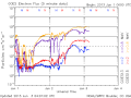 携帯の方で本BLOGからのリンクではチャートが見づらい場合はリーマンさんの記事内にある「注意報まとめ」のリンクをたどるとポリポリさんが作成されたページに飛べます。このページ内に【ETS8静止軌道磁場】がありますので、こちらをクリックするとポリポリさんが作成された「携帯でも見られるグラフ」をご覧いただけると思います。(ポリポリさん、いつもお疲れ様でございます。ぺこり)