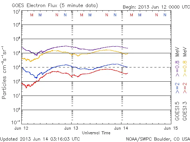 携帯の方で本BLOGからのリンクではチャートが見づらい場合はリーマンさんの記事内にある「注意報まとめ」のリンクをたどるとポリポリさんが作成されたページに飛べます。このページ内に【ETS8静止軌道磁場】がありますので、こちらをクリックするとポリポリさんが作成された「携帯でも見られるグラフ」をご覧いただけると思います。(ポリポリさん、いつもお疲れ様でございます。ぺこり)