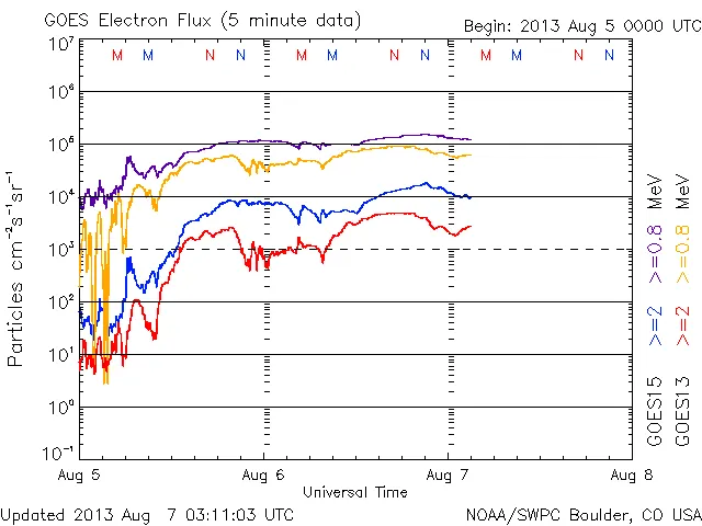 08/05 21時(UT)~08/06 08時(UT)くらいにかけて少し乱れがありましたが、その後は穏やかな推移です。