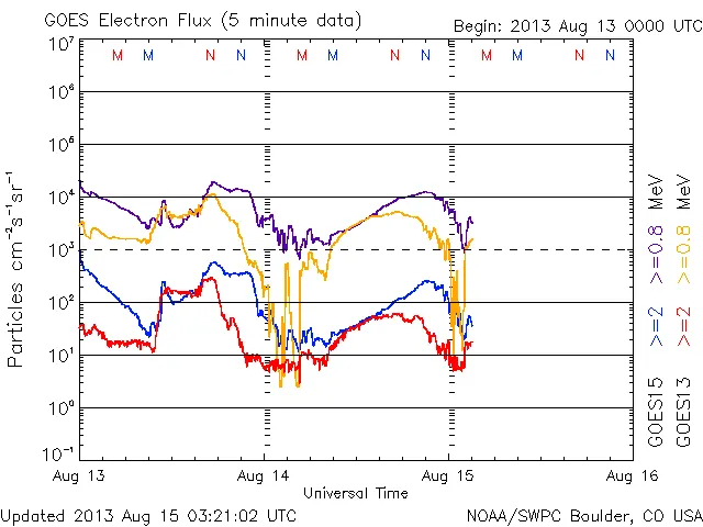 08/14 20時(UT)頃から下降をはじめ、UTで 08/15 に変わったあたりから激しい乱れがあります。