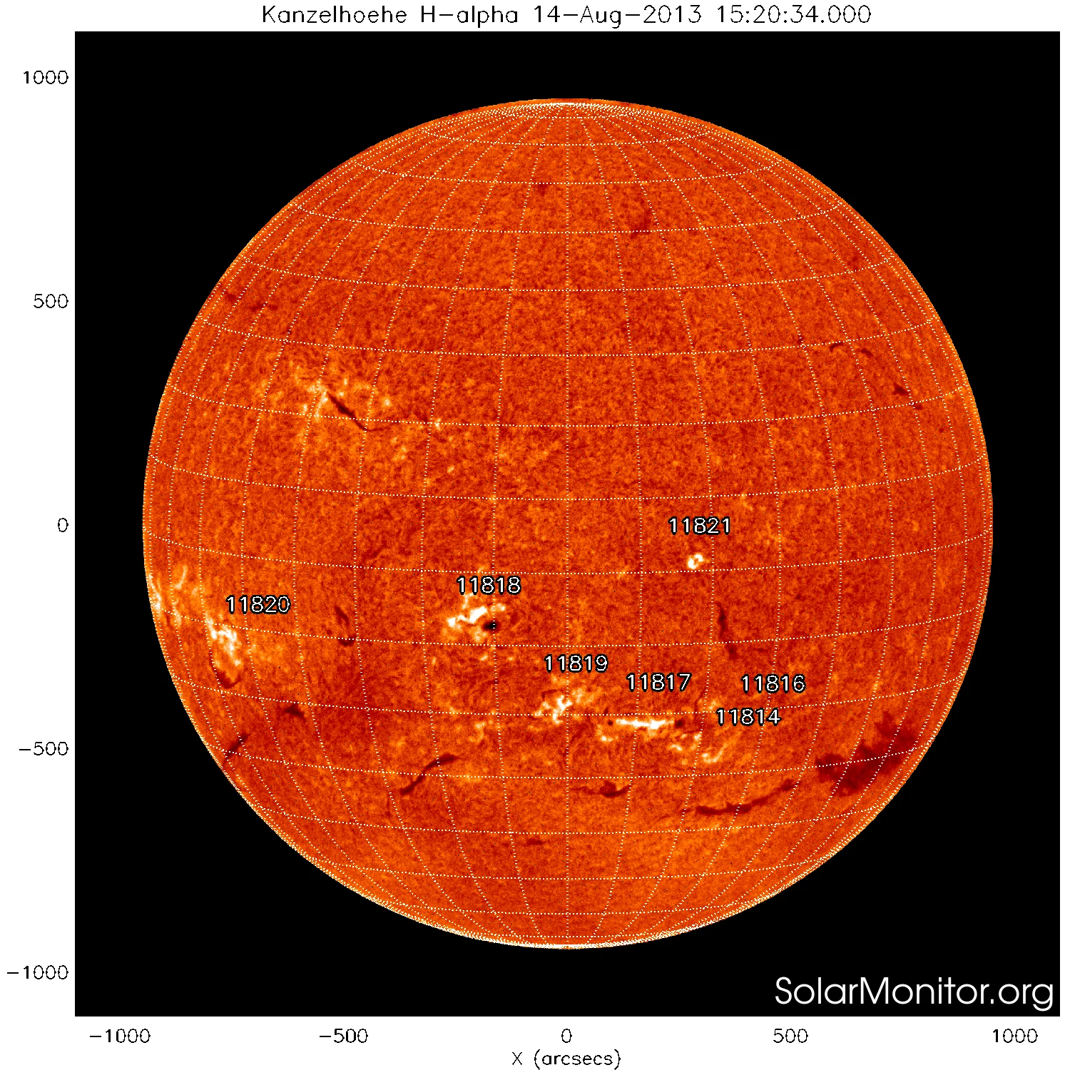 現時点で地球の正面あたりにある黒点群は1817、1818、1819、1821です。←黒点番号が振られていない活動領域でもフレアは発生しますので、あくまで目安として捉えてください。