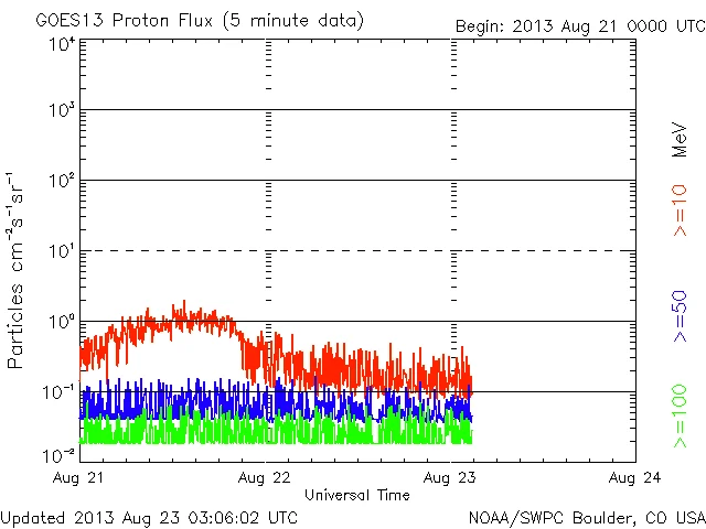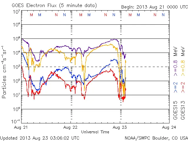 08/22 07時(UT)前後にやや強い落ち込みがありました。その後、08/22 22時(UT)くらいから激しい反応が続いています。