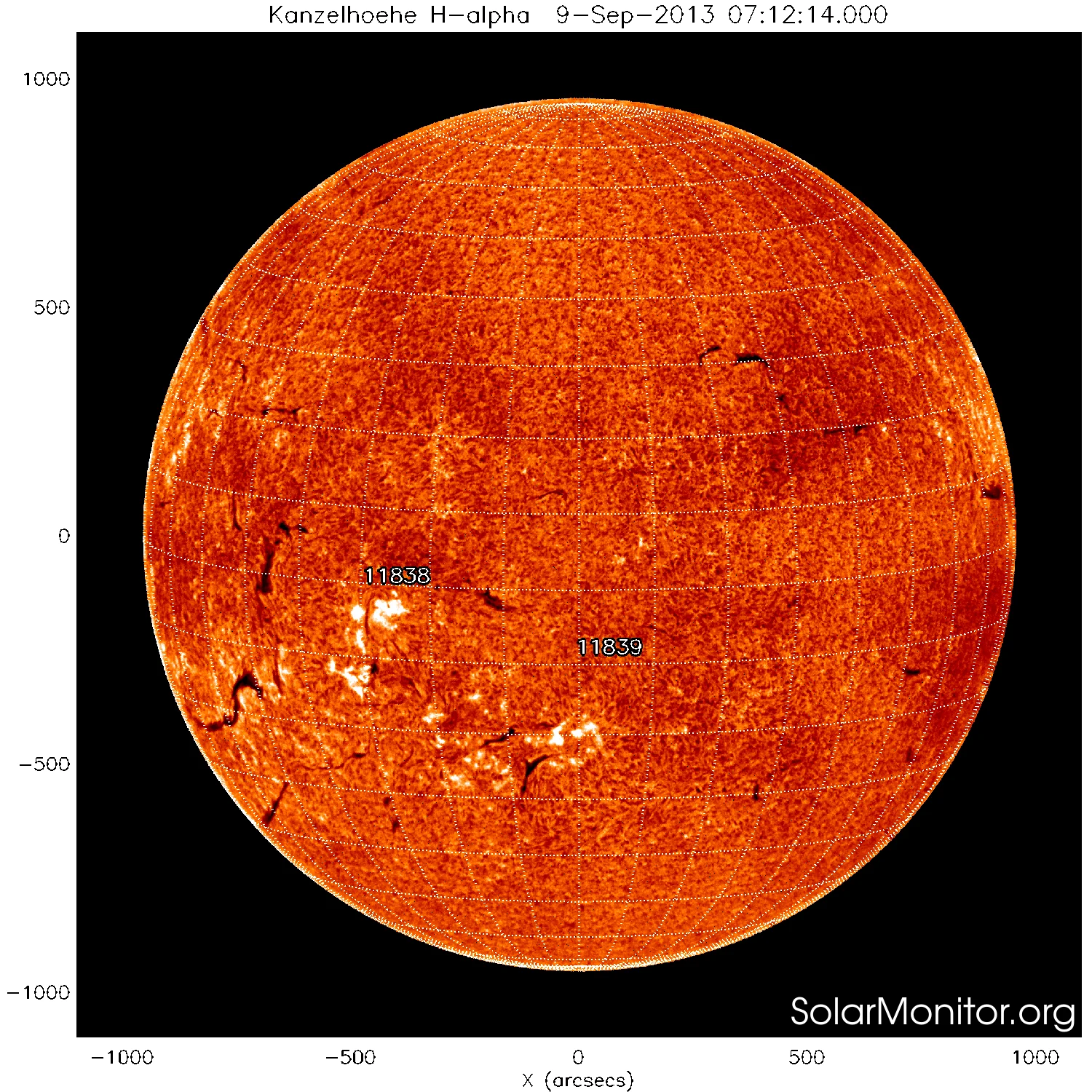 現時点で地球の正面あたりにある黒点群は1838です。←黒点番号が振られていない活動領域でもフレアは発生しますので、あくまで目安として捉えてください。