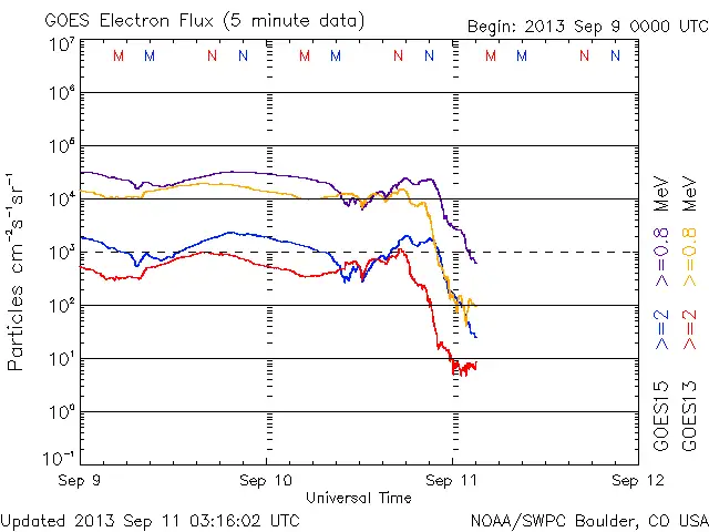 穏やかな推移でしたが、09/10 08時(UT)くらいから乱れはじめ、UTで15時から11日の日付が変わる頃に向けてゆっくり落ち込んでいます。
