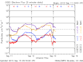 携帯の方で本BLOGからのリンクではチャートが見づらい場合はリーマンさんの記事内にある「注意報まとめ」のリンクをたどるとポリポリさんが作成されたページに飛べます。このページ内に【ETS8静止軌道磁場】がありますので、こちらをクリックするとポリポリさんが作成された「携帯でも見られるグラフ」をご覧いただけると思います。(ポリポリさん、いつもお疲れ様でございます。ぺこり)