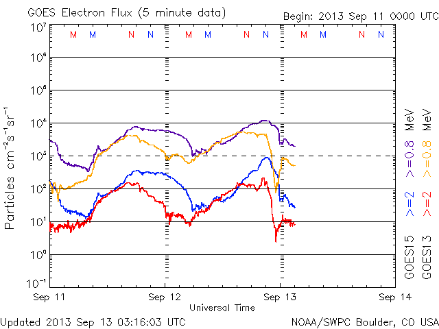 ギザギザしたラインが続いていましたが、09/12 21時(UT)過ぎから落ち込みはじめ、22時頃、少し反応がありました。