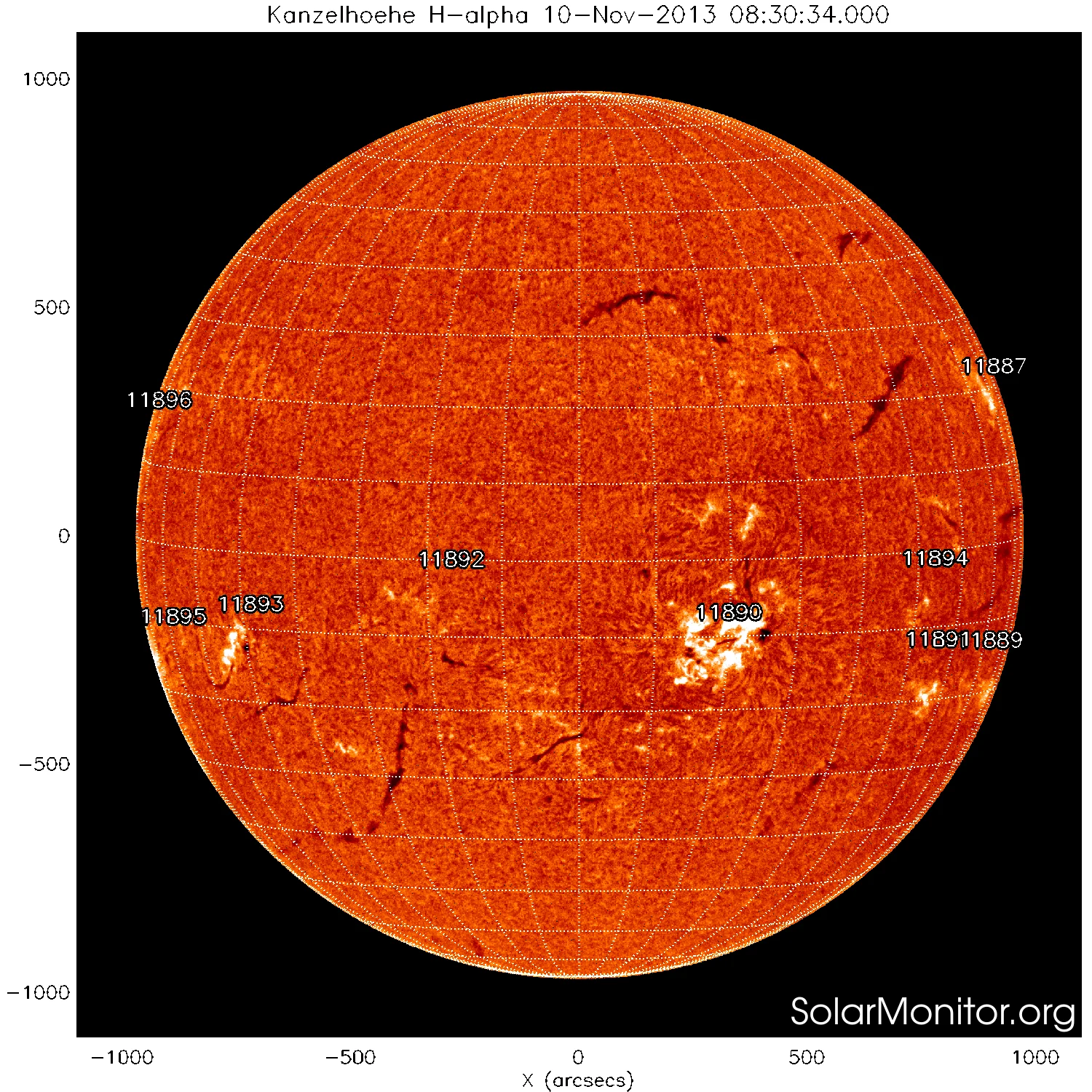 1890の黒点数は減っていますが、大きさは変わりません。もう少しの間、警戒が必要だと思います。