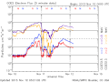 携帯の方で本BLOGからのリンクではチャートが見づらい場合はリーマンさんの記事内にある「注意報まとめ」のリンクをたどるとポリポリさんが作成されたページに飛べます。このページ内に【ETS8静止軌道磁場】がありますので、こちらをクリックするとポリポリさんが作成された「携帯でも見られるグラフ」をご覧いただけると思います。(ポリポリさん、いつもお疲れ様でございます。ぺこり)