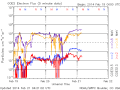 携帯の方で本BLOGからのリンクではチャートが見づらい場合はリーマンさんの記事内にある「注意報まとめ」のリンクをたどるとポリポリさんが作成されたページに飛べます。このページ内に【ETS8静止軌道磁場】がありますので、こちらをクリックするとポリポリさんが作成された「携帯でも見られるグラフ」をご覧いただけると思います。(ポリポリさん、いつもお疲れ様でございます。ぺこり)