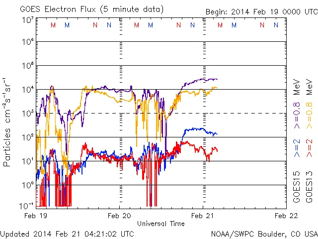02/20 06時(UT)以降、再上昇しました。現在は下降し続けていますが、通常のレベルに戻るには少し時間がかかりそうです。